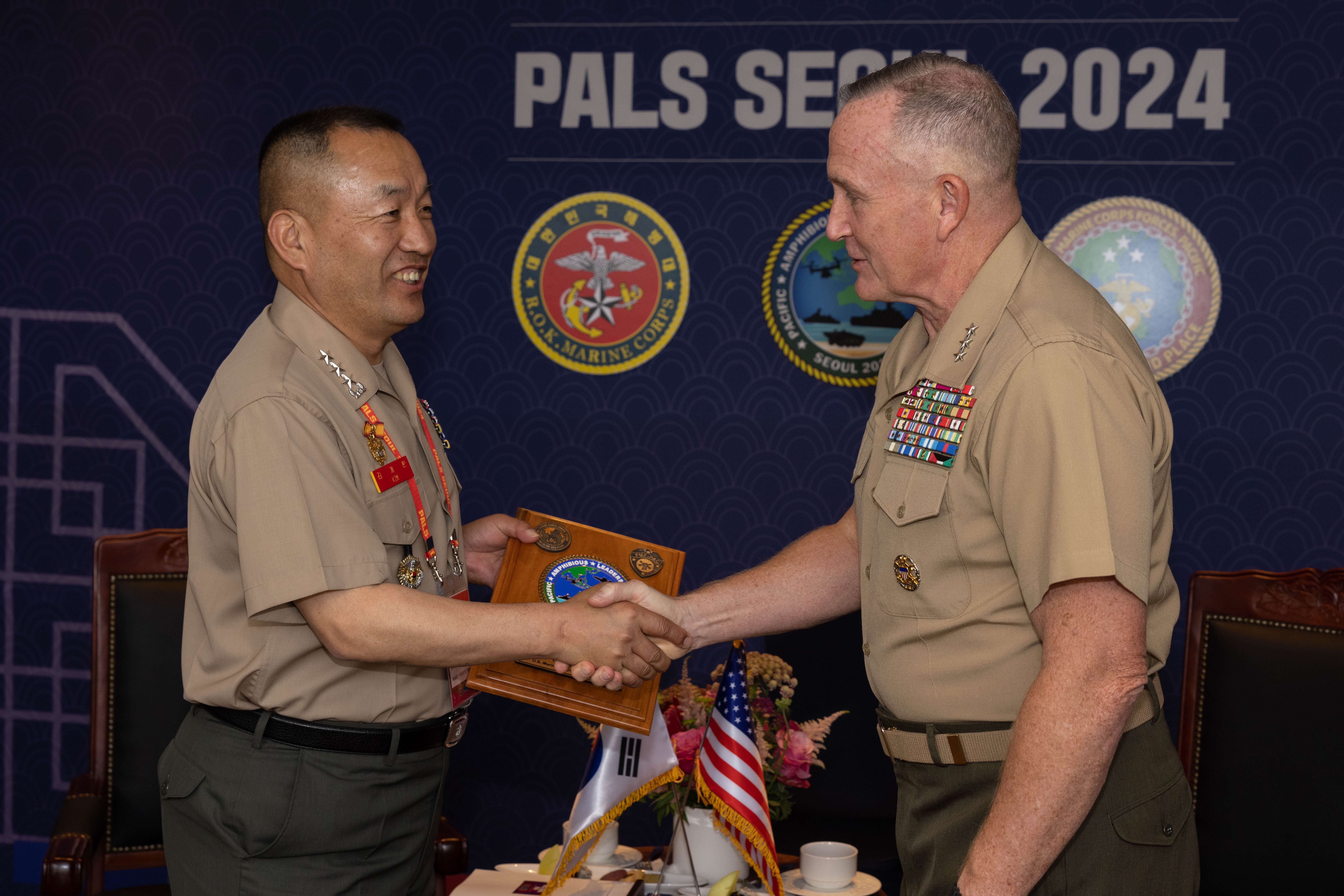 U.S. Marine Corps Lt. Gen. William Jurney, commander, U.S. Marine Corps Forces, Pacific, and Lt. Gen. Kim Kye-Hwan, Commandant of the Republic of Korea Marine Corps, co-host the 10th annual Pacific Amphibious Leaders Symposium in Seoul, South Korea, June 3-5, 2024.
