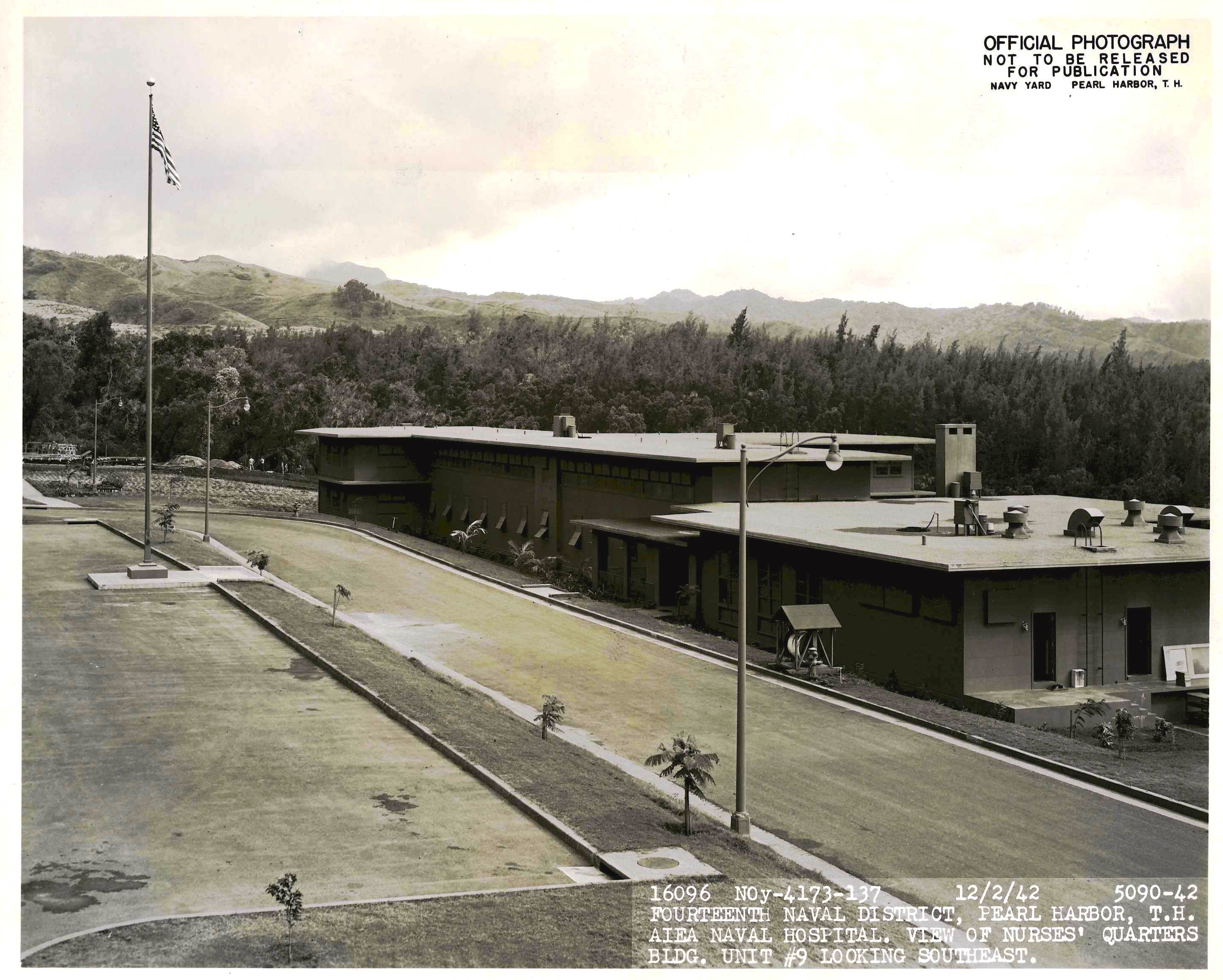 CAMP H.M. SMITH, Hawaii-The Aiea Naval Hospital here was the primary rear-area hospital for Navy and Marines during World War II. The Nurses’ quarters were across the street from the main entrance of the hospital. Today, the same location is home to the Nimitz-McArthur Pacific Command Center.